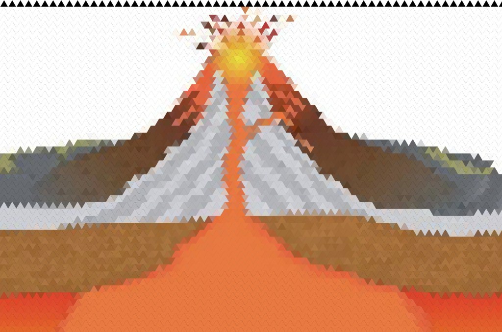 Un volcán es una montaña o cerro que tiene una apertura por la cual pueden escapar materiales gaseosos, líquidos o sólidos desde el interior de la tierra. Un volcán es una fisura de la corteza terrestre sobre la cual se acumula un cono de materia fundida y sólida que es lanzada a través de la chimenea desde el interior de la Tierra. En la cima de este cono hay una formación cóncava llamada cráter. Cuando se produce actividad en un volcán se dice que el volcán está en erupción.Los volcanes por lo general son estructuras compuestas de material fragmentado y corrientes de lava. A través de la chimenea sale la roca fundida que proviene del manto terrestre la cual se le conoce como magma. Una vez el magma sale a la superficie, pierde los gases que contiene porque se evapora, y al escurrir por las laderas del cono se le conoce como lava. Este cono se va formando por capas solidificadas sucesivas, todas inclinadas hacia el exterior de la chimenea.El material rocoso expulsado puede alcanzar entre 4-200 kilómetros (2-62 millas) de altura. Habitualmente la lava recién emitida bordea temperaturas entre 700-1,300 °C (1,300º-2,200ºF), dependiendo de su composición química.Las rocas que se forman a partir del enfriamiento del magma se llaman rocas ígneas. Si el enfriamiento tuvo lugar en el interior de la tierra, y las rocas fundidas no llegaron a emerger a la superficie, se llaman rocas ígneas intrusivas. Cuando la roca se ha formado a partir del enfriamiento de lava en la superficie, se denominan como roca ígnea extrusiva. También existen rocas ígneas las cuales se enfrían a gran profundidad y a éstas se les conocen como rocas plutónicas.